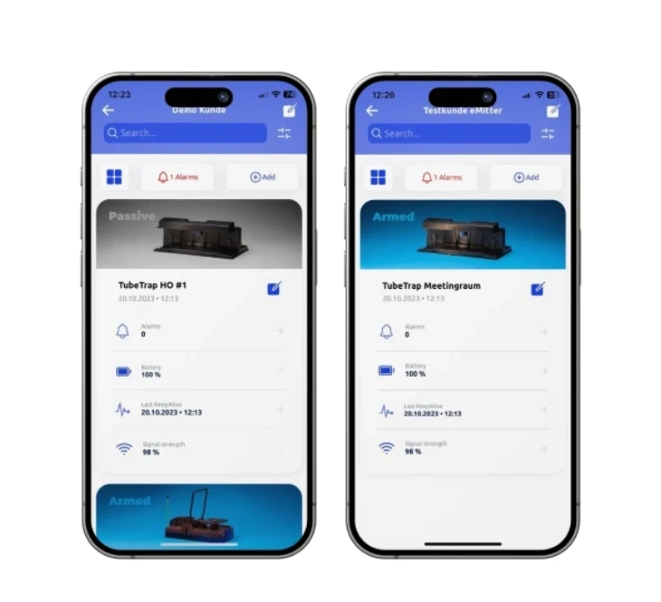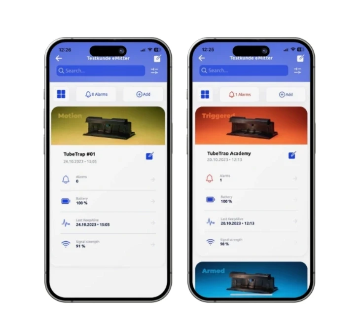 Die Tubetrap lässt sich mit Hilfe der Emitter App oder dem Portal aus der Ferne in den Monitoring-Modus umstellen. Die Falle detektiert in diesem Modus lediglich Bewegung, löst dabei aber nicht aus.“ „Das Portal bietet zusätzlich die Funktion den Monitoring-Modus in wiederkehrenden Intervallen automatisch einzustellen. So lassen sich Fallen z.B. von Montag bis Freitag im „Fang-Modus“ betreiben. Am Wochenende, wenn kein Mitarbeiter vor Ort ist um innerhalb von 24 Stunden eine gefangene Maus zu entsorgen, bietet der Monitoring-Modus die Option trotzdem noch Bewegungen zu detektieren. Diese Einstellung lässt sich auf beliebig viele Tubetraps übertragen.